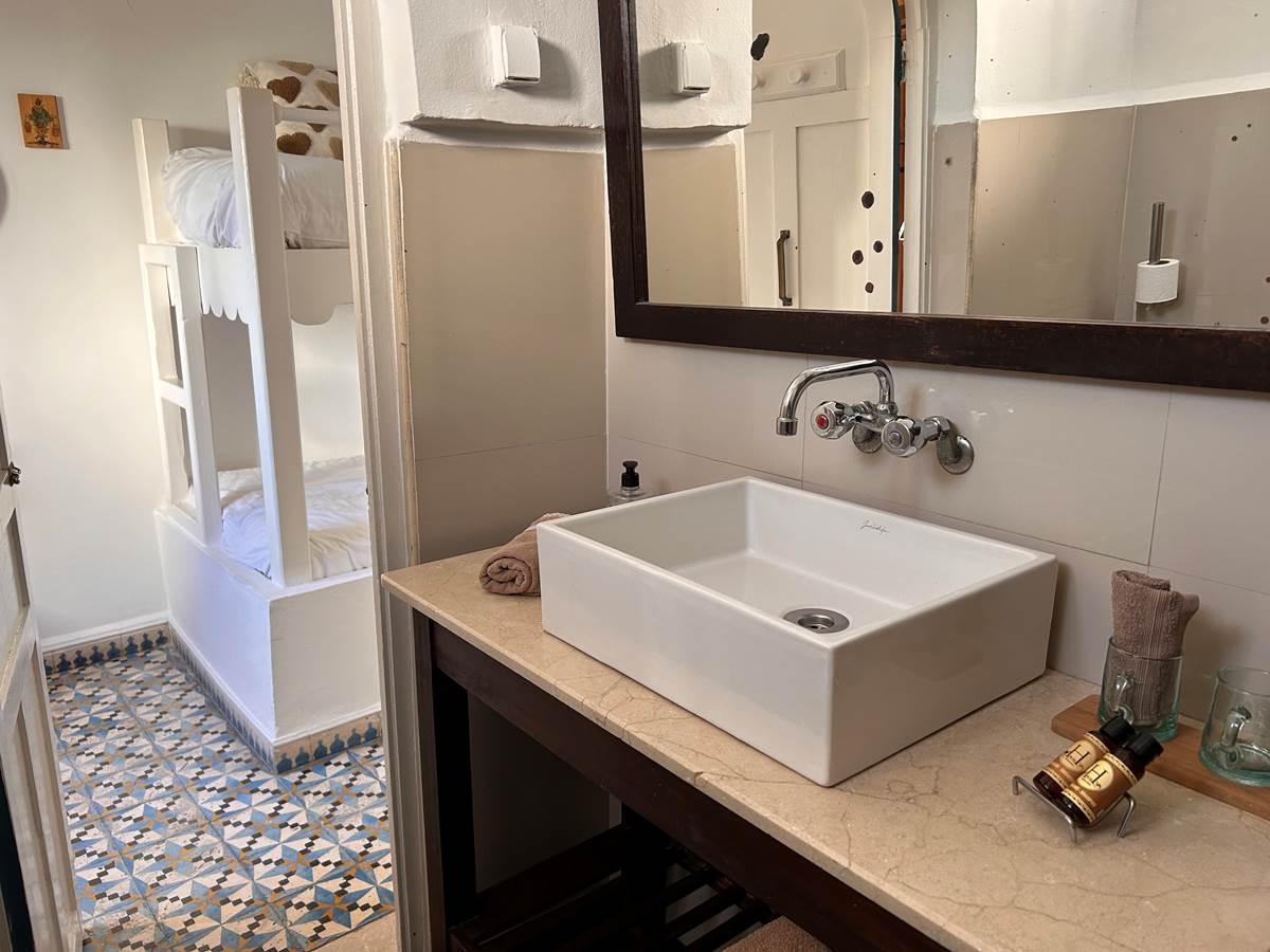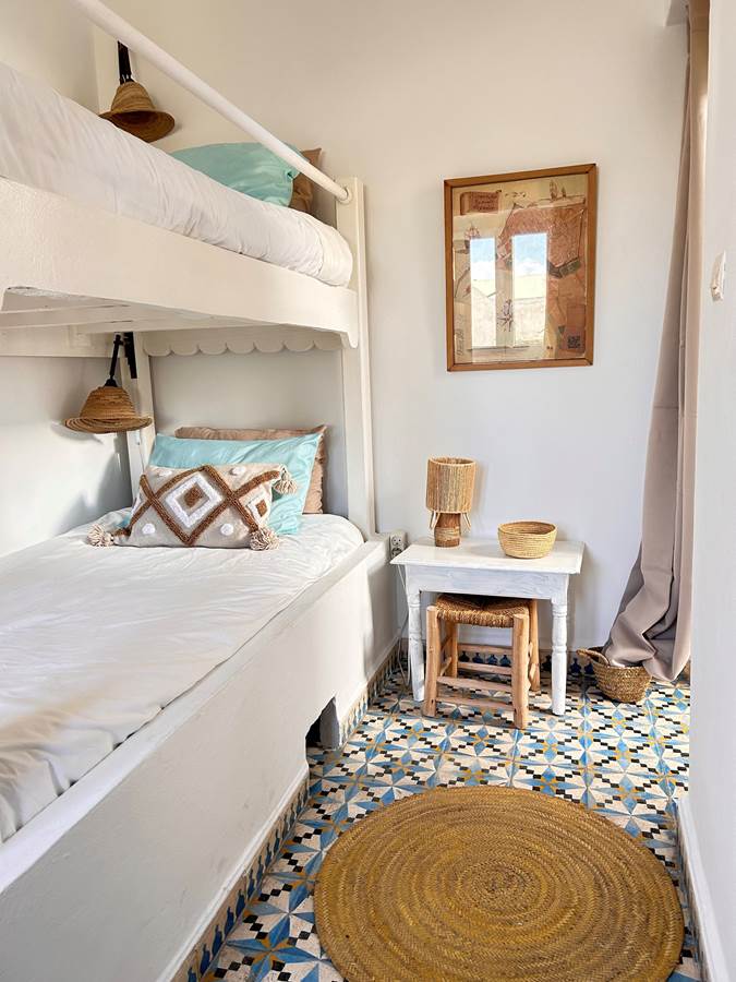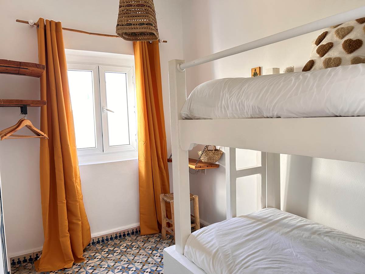 Cette petite chambre située au 2 ème étage a deux lits superposés.